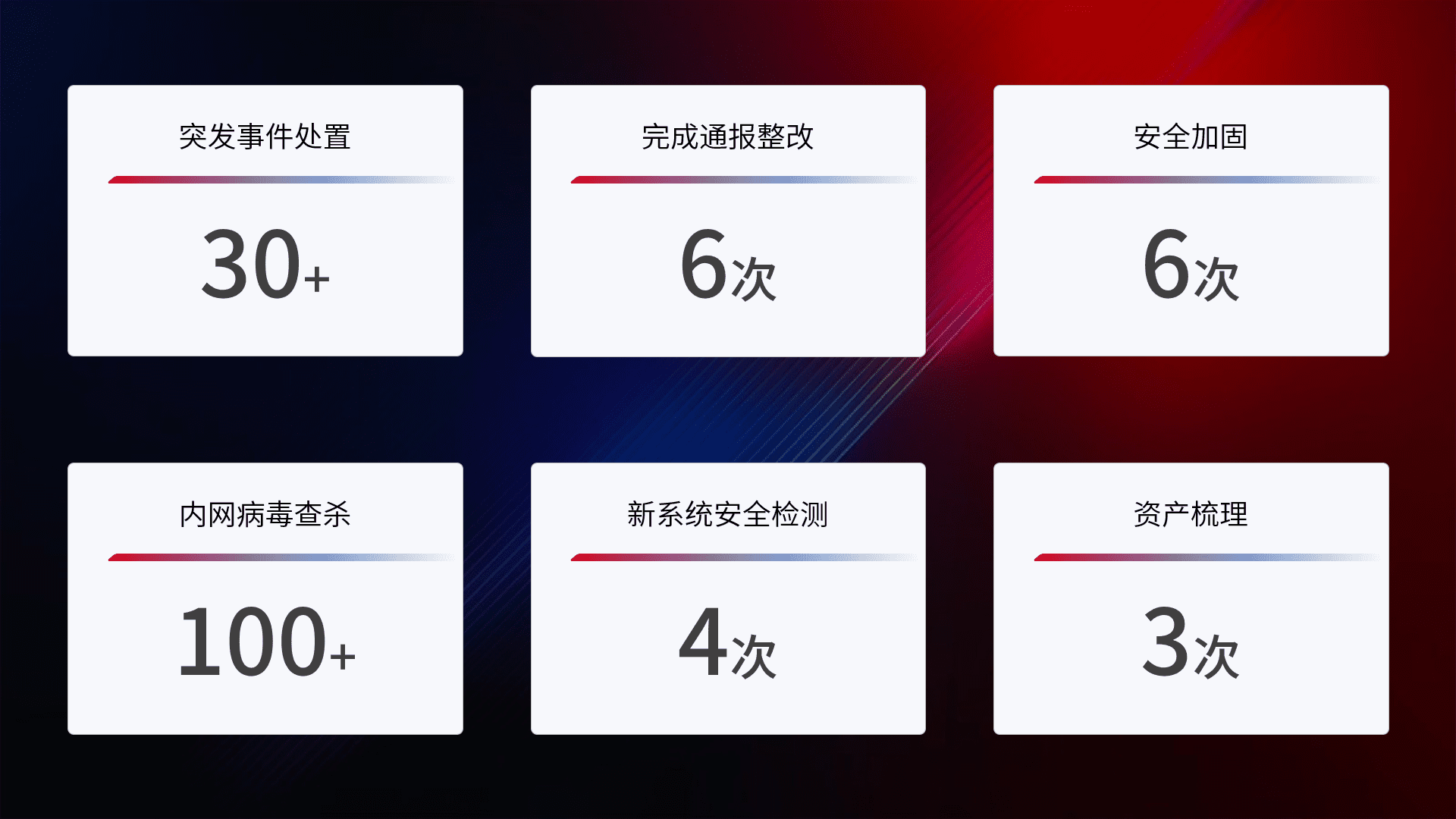 根据客户需求定制整改方案,,,,强化应急演练,,,提升网络安全事件应对能力。。。。